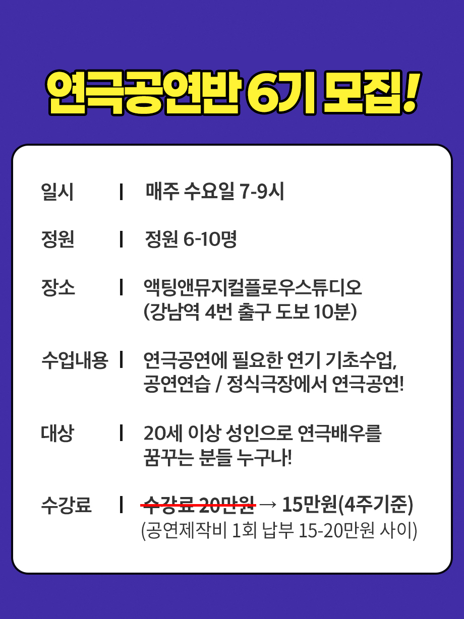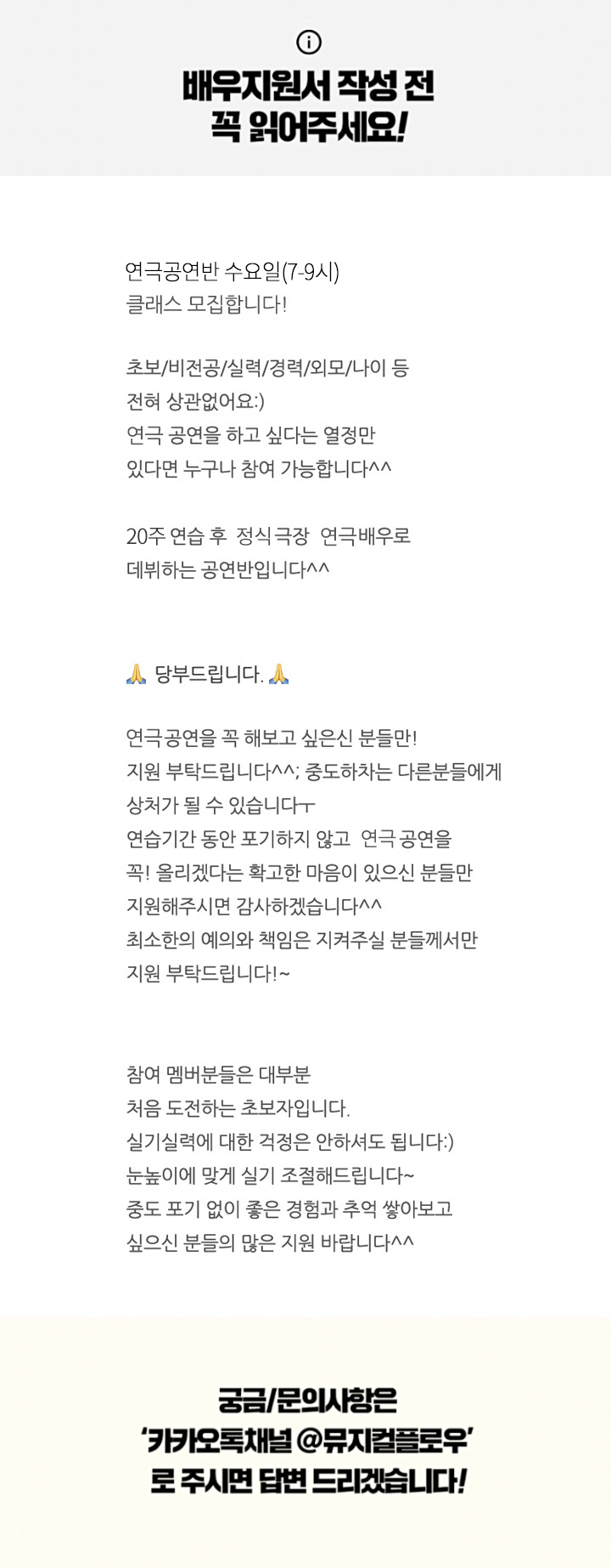 ⭐️ [A&M FLOW] 연극공연반 6기(수7-9시) 배우신청서!⭐️