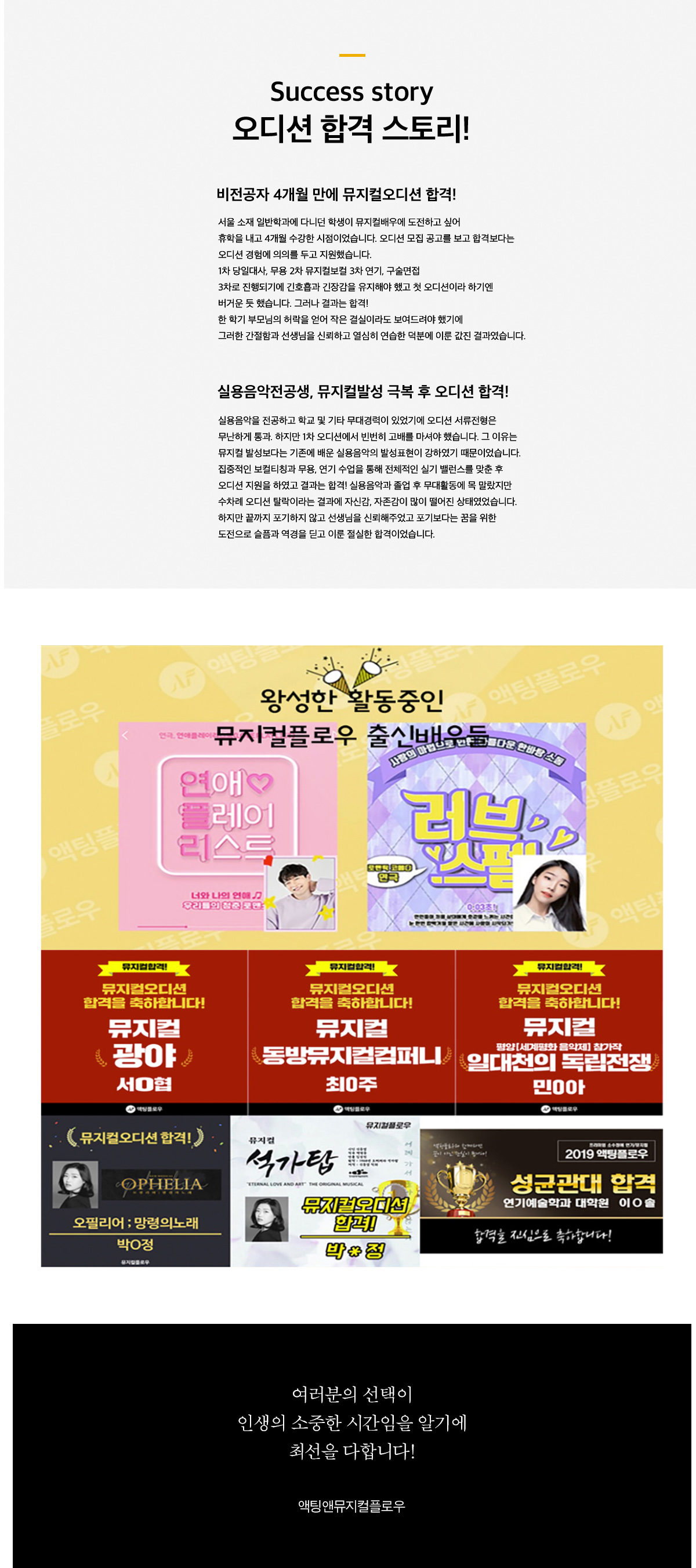 액팅앤뮤지컬플로우 - 뮤지컬오디션/대학원/편입/성인뮤지컬/직장인뮤지컬/뮤지컬동호회
